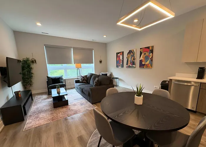 Die Apartments verfügt über eine komplette Küche mit einem Herd und einem Geschirrspüler. Dieses Apartment ist eine 22-minütige Fahrt vom Flughafen Midway International entfernt gelegen.